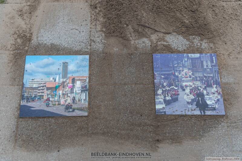 Na de verbouwing van de Geldropseweg zijn 2 foto tegels onthuld, 1 van de oude situatie en 1 van de nieuwe situatie. De foto van de nieuwe situatie is geleverd door de Beeldbank Eindhoven.