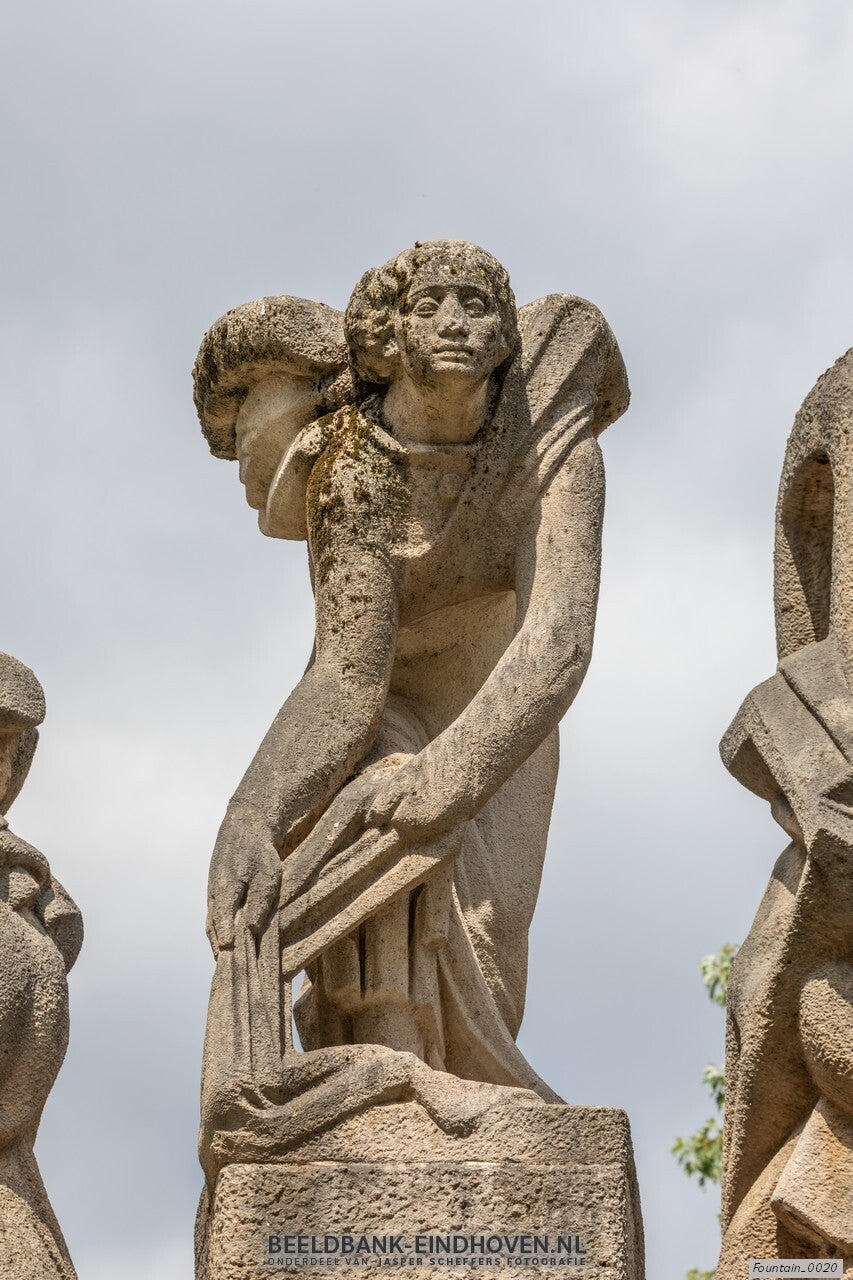 Het beeld over Het Licht in de top van de fontein Panta Rhei, met als gedicht: